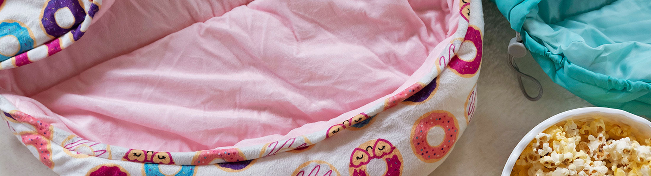 Sleep-n-Pack: Packable Little Kid's Sleeping Bag & Backpack, Cozy Mink, Donuts